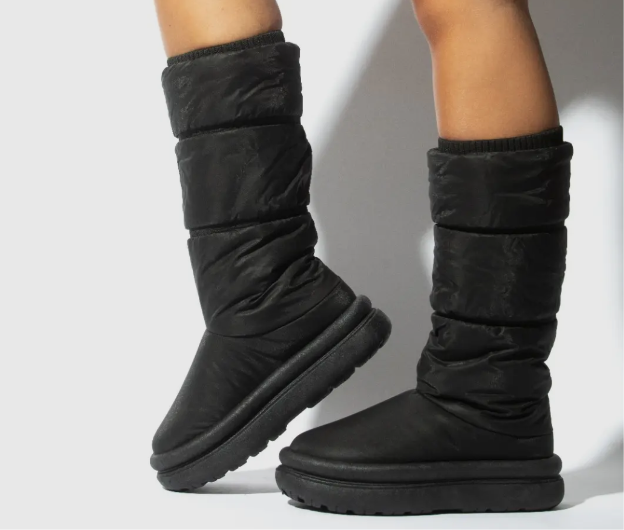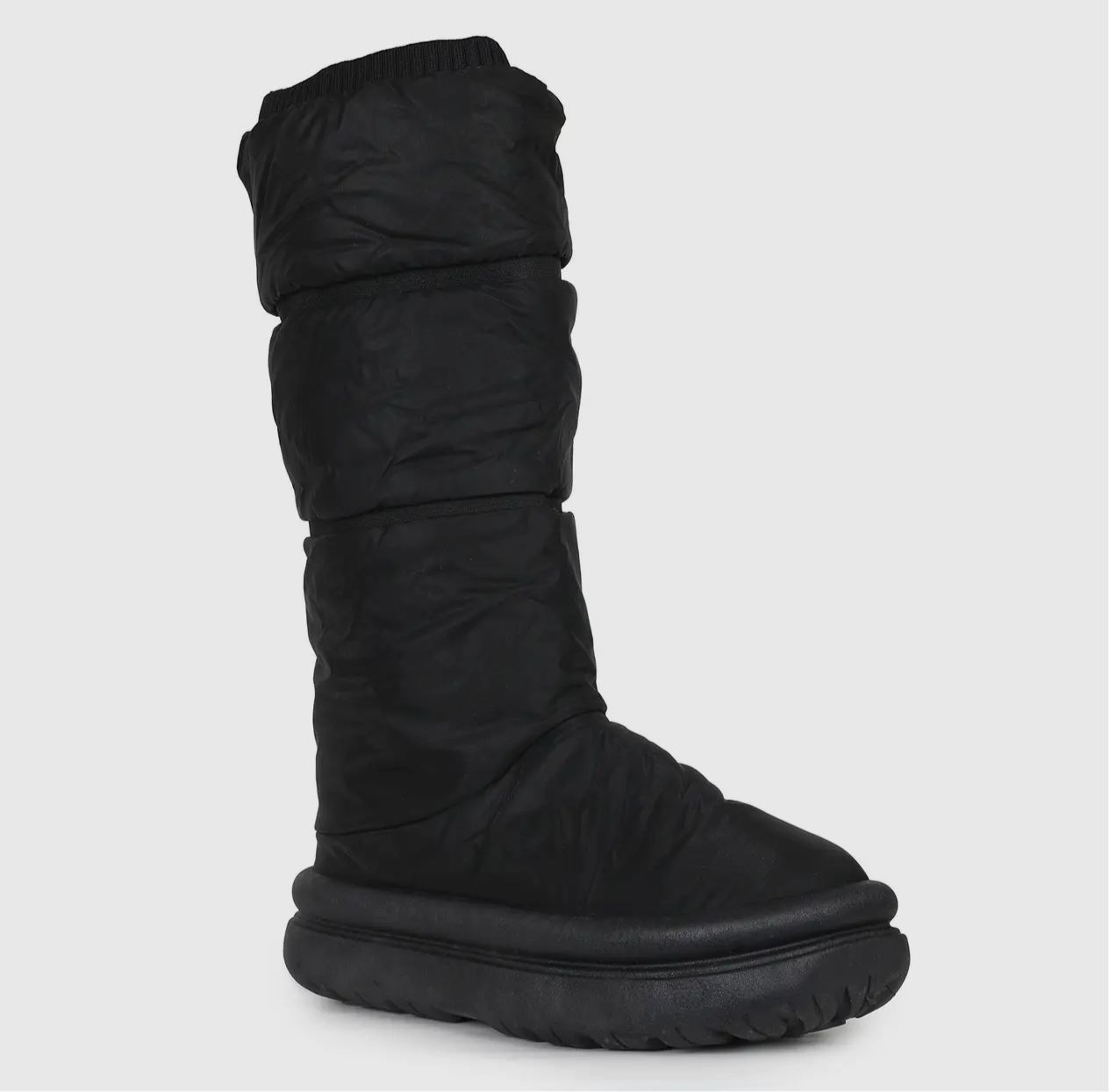 Black bubble boots with fur inside for insulated fit with round platform finish.