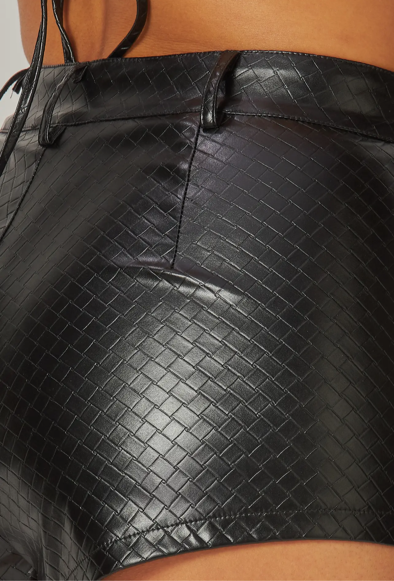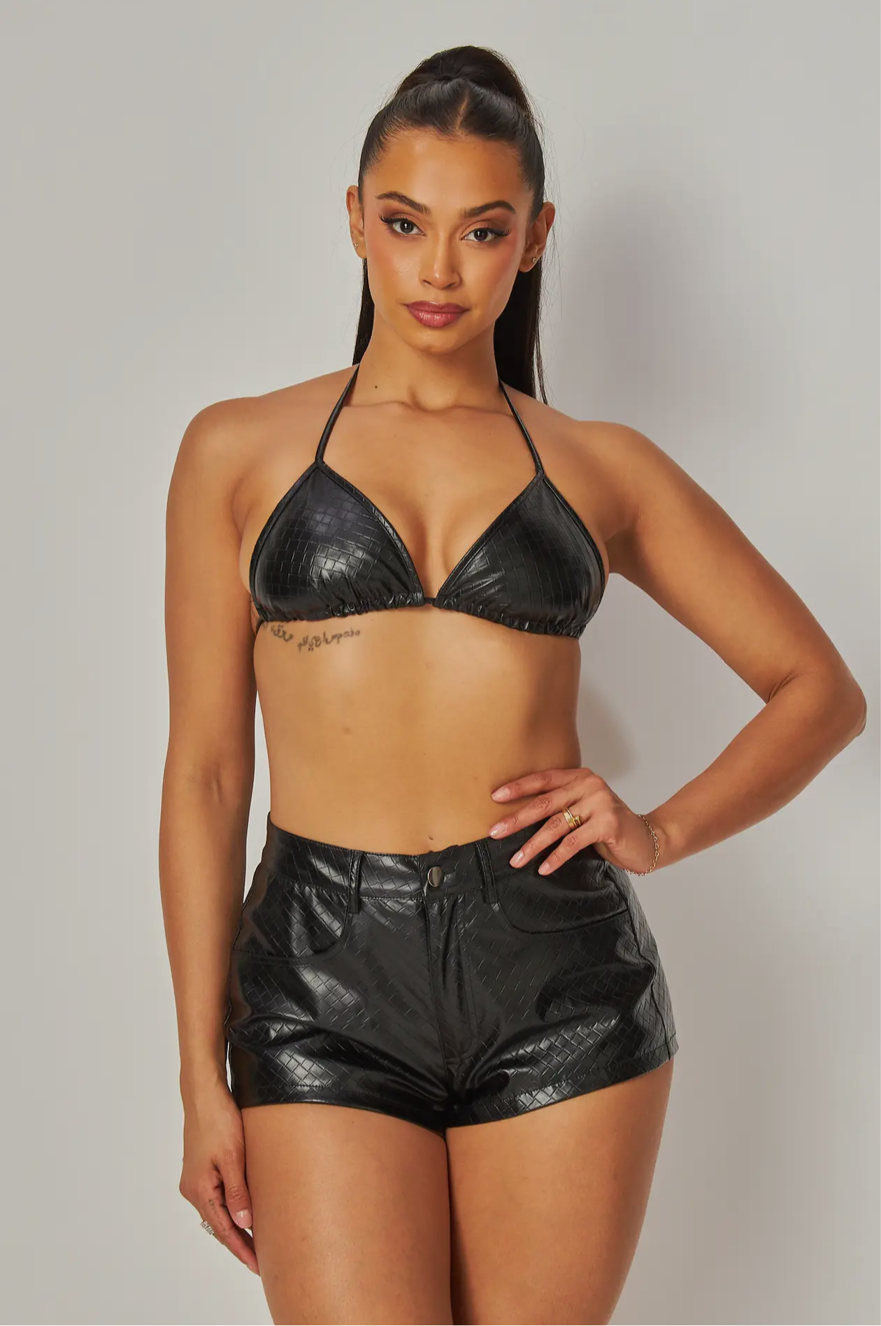 Faux leather shirt set with bralette included 4 way stretch with a diamond textured finish.